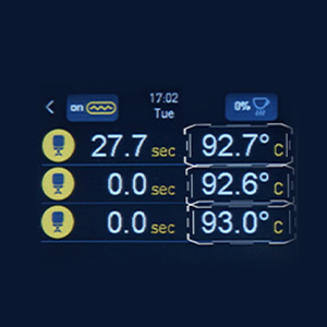 200/220 V, 3 50/60 HzBoiler capacity 7.5 L Group head capacity 0.5 L GCS Grinder Control System Optional MCS Milk Control System Optional OCS Online Control System Optional -